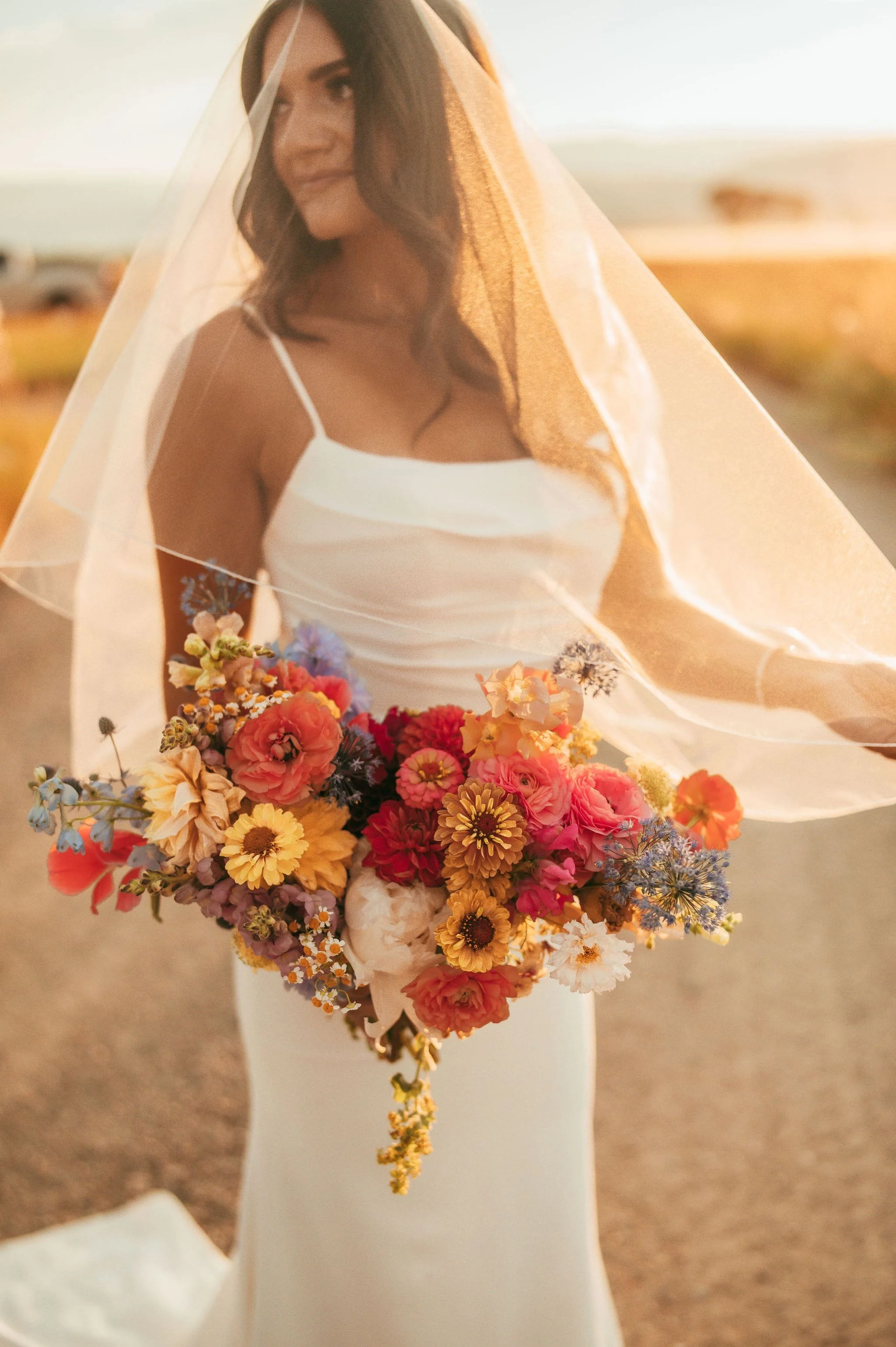 Hannah and Jonah wanted to embrace color while still holding to an elevated, elegant and classic style. With the lamps from Montana Party Rentals, candles and the blue cut glasses, we achieved texture, brightness and lightness with the bright, Montana grown florals. I’m not sure I’ll ever get over their golden hour pictures near the end of the gallery. Copper Rose Ranch just GLOWS in the afternoon in the summers. With her simple, effortless details and the relaxed atmosphere, we truly had a blast installing their wedding.